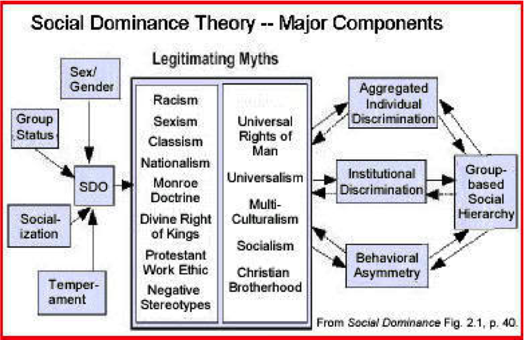 On a final note, social dominance theory takes a multi-level approach to addressing the universal inequities in social relations exhibited across history and place. The relative contingencies hinge on geopolitical, socio-historical exigencies to be sure. We might be bolstered and encouraged that social science informed by anthropological work has brought these factors to fuller comprehension and to much use. For instance, Schwartz’s examination of core human values places two overall solutions to the three interrelated demands of social life. These findings along with Lakoff’s frames theory are now being successfully deployed as we speak (see Monbiot’s recent talk and the David Suzuki Foundation’s article).